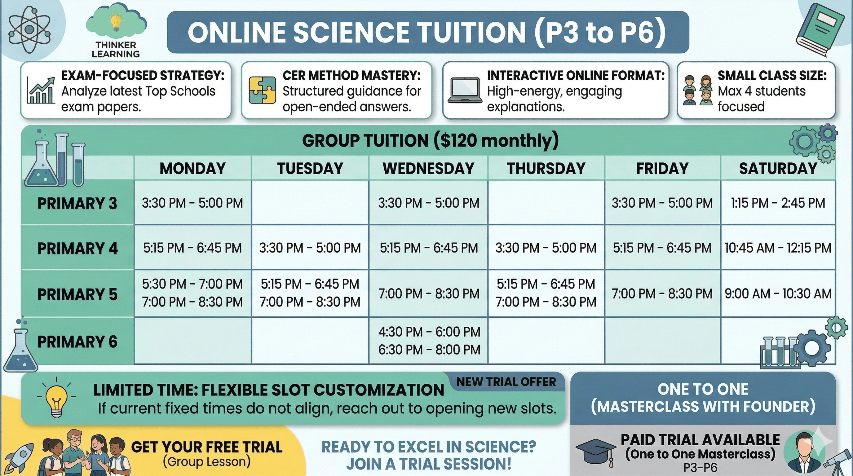 While going through each and every question through video recordings, Mr Shane will elaborate on the science concept needed for each correct answer so to help your child understand better. As for OEQs, different answering techniques will be introduced whenever possible so your child will be familiar with how to use the answering techniques along with science KEYWORDS during the exams to score!